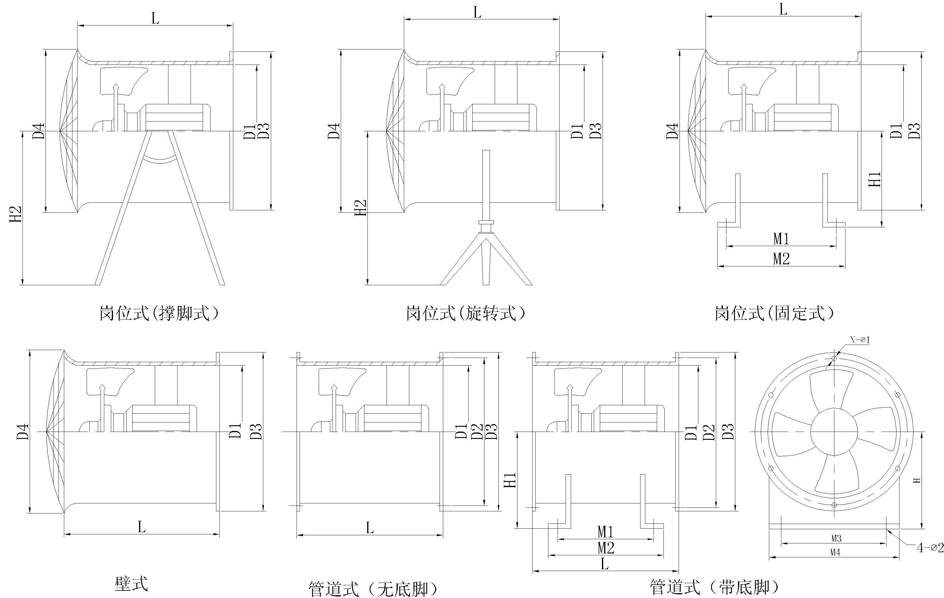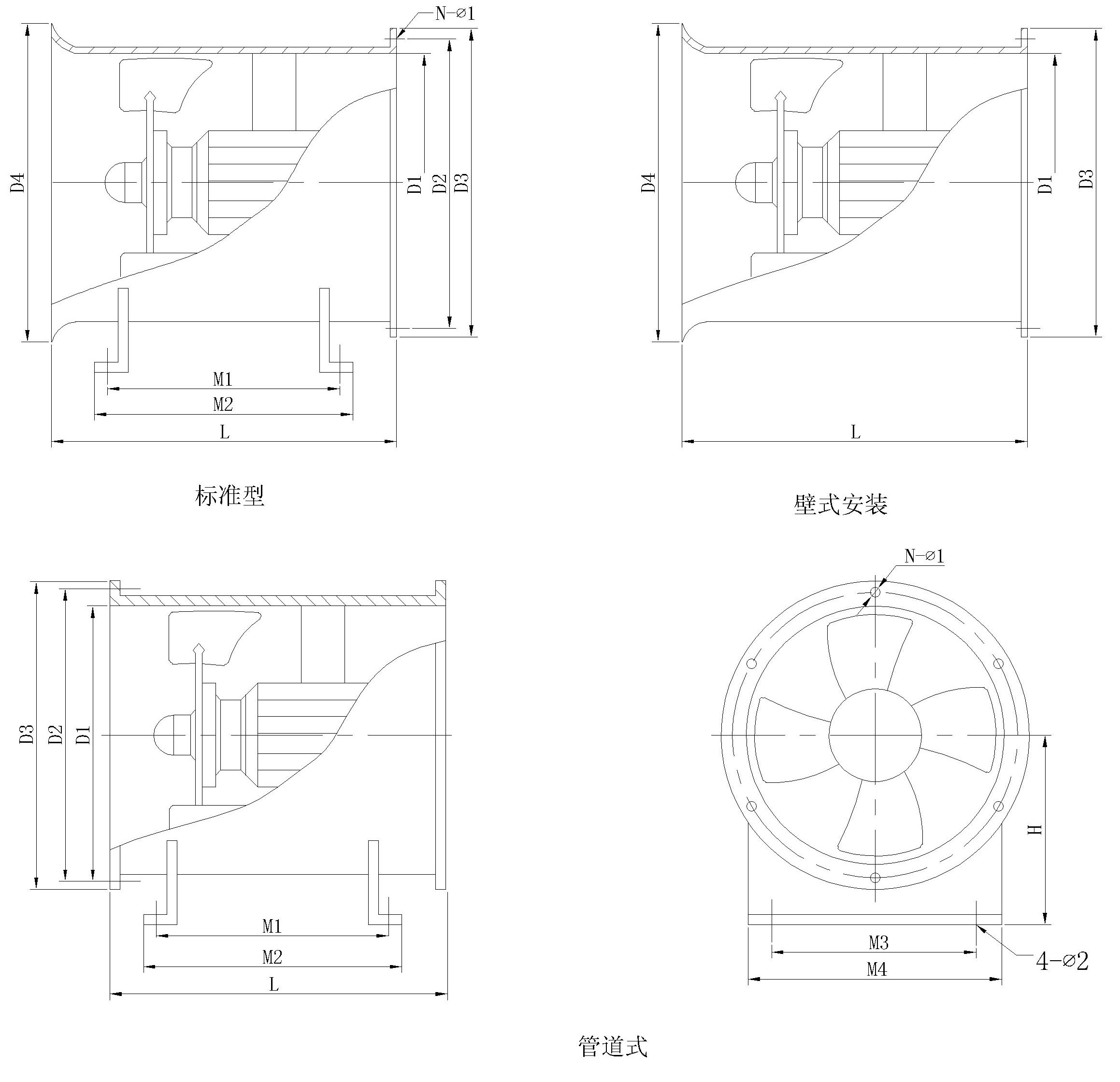 型號(hào) | D1 | D2 | D3 | D4 | H1 | H2 | L | M1 | M2 | M3 | M4 | N-Φ1 | 4-Φ2 |